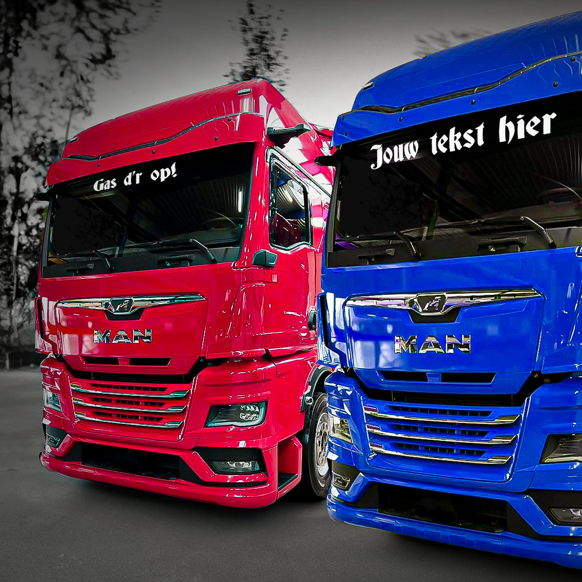 Laat jouw truck spreken! Onze gepersonaliseerde vrachtwagen raamstickers, geschikt voor binnenplak, maken jouw cabine uniek én herkenbaar. Ideaal om je naam, bijnaam, bedrijf of boodschap te laten opvallen bij collega's, fans én klanten. Perfect voor onderweg én voor social-media!